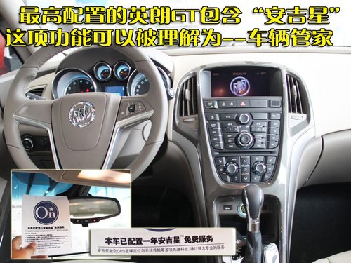 內飾部分英朗GT看上去同樣是一副新君越翻版的樣子。圓弧形的大型儀表臺與車門融合在一起,仿佛將車內的乘員環抱其中。在內飾用料方面真皮、金屬、更加舒適的軟性的塑料都會讓您更加愛上英朗GT。