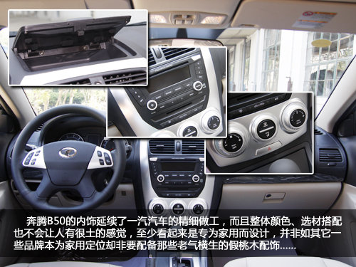 發動機出處?聯想一下一汽汽車旗下的那些尤其以一汽-大眾為首的合資品牌,再結合上圖中奔騰B50的動力輸出效果,不難猜出其動力、傳動系統的出處,畢竟一汽汽車手上的各種汽車制造資源非常多,不用白不用嘛。