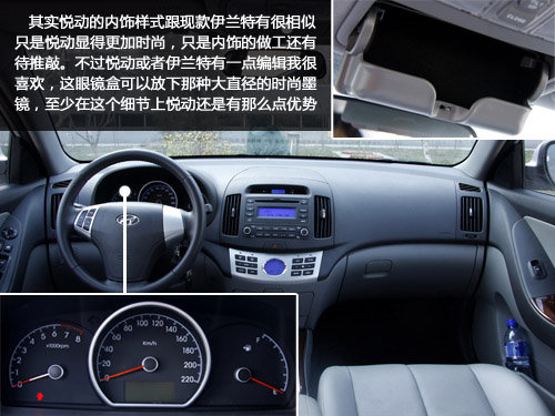悅動的內(nèi)飾設(shè)計主要以簡潔為主,并輔助以時尚實(shí)用,雖然桃木的配飾依然感覺塑料感十足,但是顏色的搭配讓它桃木俗套的感覺減弱不少,值得一提的是它的眼鏡盒設(shè)計,頭頂前方的位置會更加方便行駛中放置眼鏡,并且眼鏡盒空間比較大,一般的大個墨鏡放進(jìn)去不會有任何阻礙。