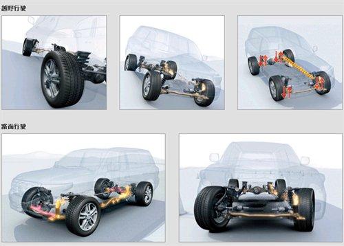 而在進入崎嶇路況時,用于前后左右車輪懸掛受到擠壓或者拉伸程度并不相同,此時液壓油缸中平衡被打破,液體可以在回路中自由流動,此時前后穩(wěn)定器不再發(fā)揮作用,而僅相當(dāng)于懸掛連桿,從而賦予了懸掛更大的行程。