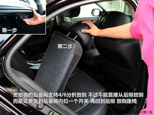 思鉑睿的后備廂內部并不是很平整,有一個向下的凹陷,對實用性有一定影響。后排座椅的放倒方式也不夠人性化,不能直接從后排放倒座椅。手套箱內的后備廂防盜開關有一定實用性,可以防止車輛在等紅燈等情況時備廂內的物品被盜。