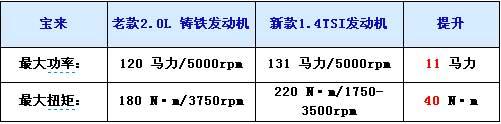 寶來2011款車型終于使用了大眾1.4T+DSG的動力組合,1.4TSI發動機最大功率131馬力,并可以在1750-3500轉的區間輸出220牛米的扭矩。相比那款鑄鐵的2.0L發動機,在最大功率上提高了11馬力,最大扭矩更是增加了40牛米之多。