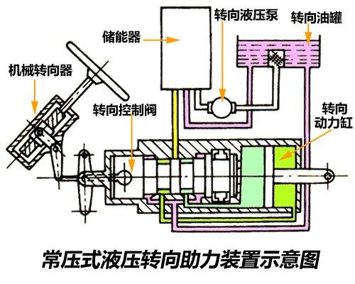 根據(jù)系統(tǒng)內(nèi)液流方式的不同可以分為常壓式液壓助力和常流式液壓助力。常壓式液壓助力系統(tǒng)的特點是無論方向盤處于正中位置還是轉(zhuǎn)向位置、方向盤保持靜止還是在轉(zhuǎn)動,系統(tǒng)管路中的油液總是保持高壓狀態(tài);而常流式液壓轉(zhuǎn)向助力系統(tǒng)的轉(zhuǎn)向油泵雖然始終工作,但液壓助力系統(tǒng)不工作時,油泵處于空轉(zhuǎn)狀態(tài),管路的負(fù)荷要比常壓式小,現(xiàn)在大多數(shù)液壓轉(zhuǎn)向助力系統(tǒng)都采用常流式。可以看到,不管哪種方式,轉(zhuǎn)向油泵都是必備部件,它可以將輸入的發(fā)動機機械能轉(zhuǎn)化為油液的壓力。