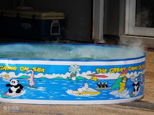 比賽當日,馬來西亞的氣溫接近40度,在太陽長時間照射下,賽道溫度幾乎達到50度,而賽車內的溫度更加夸張,這些小游泳池其實是給車手降溫用的。從溫度高達60度的車內爬出來直接坐進這樣的冰水中,應該相當爽吧,不過這么大的溫差,難道這些車手不怕生病嗎?