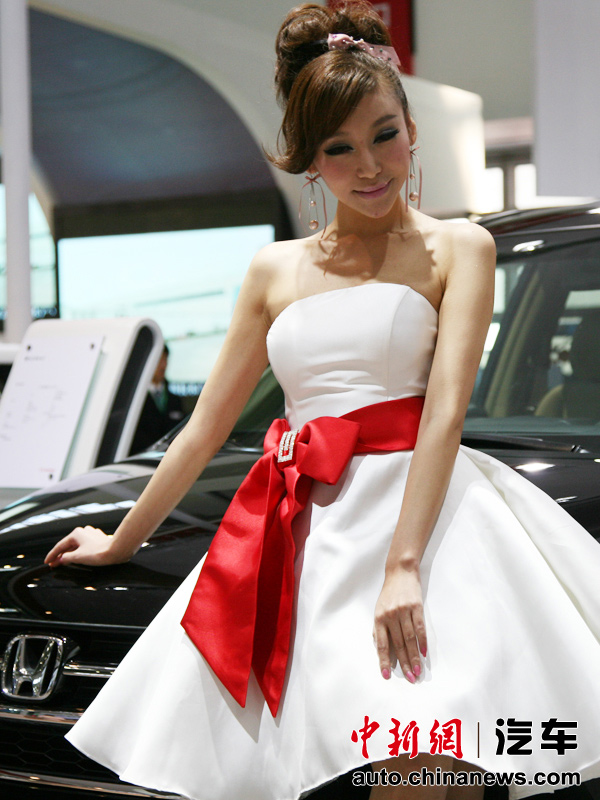 北京車展群芳競艷:靚模一襲白裙秀香肩