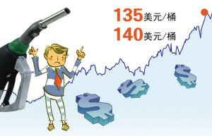 自去年8月美國次貸危機全面爆發以來,受美元走軟的影響,國際油價就從當時的80美元左右一路漲至上周五的135美元,最高還曾創下近140美元的歷史紀錄。石油不僅是國民經濟發展急需“液體黃金”,也與老百姓生活息息相關。盡管國際油價在節節上漲,但目前國內成品油價格受政府管制還“隔岸觀火”——處在國際油價70美元左右的水平,國內企業、老百姓在政府的保護下,免遭高油價之苦。上周公布的國內5月份CPI盡管達到7.7%,遠高于今年中央制定的4.8%的通貨膨脹目標,如果國內成品油價格跟國際接軌,CPI數據肯定還要高很多。但是不斷沖高的國際油價對中國能源價格改革帶來了巨大壓力。發改委負責人6月8日曾表示,中國將暫緩成品油改革以“穩定社會經濟”。但6月11日官方公布的數據卻表明,煤價和油價的上漲是推動5月份生產價格指數(PPI)創新高的主要動力之一,而PPI的上漲最終還是會傳導至CPI上。