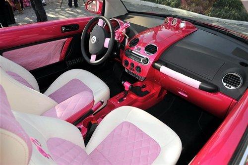 這款特別定制的新甲殼蟲敞篷車擁有專屬的粉色車身,搭配白色的輪轂給人整體的感覺就像是芭比娃娃穿著粉色的衣服腳踏白色舞鞋給人以十分淑女優(yōu)雅的印象。