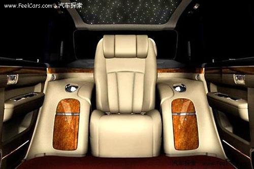 在車內,也同樣是勞斯萊斯幻影的風格:前后排隔離玻璃、羊毛地毯以及星空頂篷等,同樣給人非常豪華的感覺。