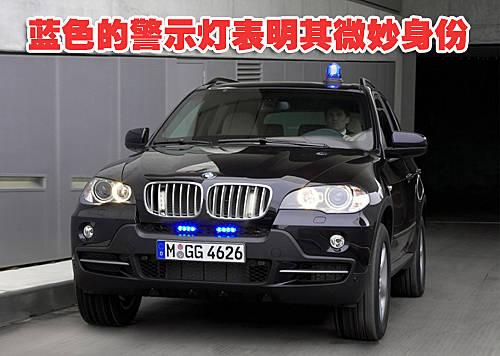 這輛寶馬X5防彈車,在外觀上與普通車型并沒有明顯區別,保持了低調不張揚的設計。車頂以及前格柵中的藍色警示燈向我們暗示了這輛車的特殊身份。