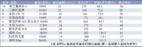 在福布斯公布的2009年度十大SUV中,除了福特Flex和Edge之外,其余八款在中國(guó)均有銷(xiāo)售。(陳鑫欣)