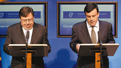愛爾蘭總理考恩表示,援助計劃包括兩部分:首先當?shù)劂y行業(yè)需要縮小規(guī)模,出售部分非核心資產(chǎn);其次是落實4年緊縮計劃,目標在2014年前削赤150億歐元,將財赤占國內(nèi)生產(chǎn)總值(GDP)比例由目前32%減至歐盟規(guī)定的3%。