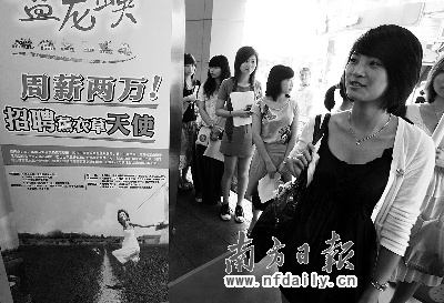 德慶盤龍峽2萬元周薪招聘“薰衣草天使”活動(dòng)進(jìn)入了現(xiàn)場招聘環(huán)節(jié)。記者昨日在招聘現(xiàn)場看到,應(yīng)聘人需先填寫報(bào)名表格經(jīng)過第一關(guān)面試,過關(guān)后進(jìn)入第二關(guān)———拍照,而第二關(guān)讓不少人笑稱為“選美比賽”。