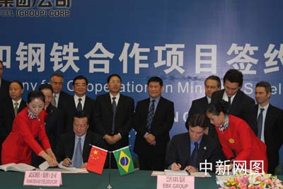 中新網(wǎng)武漢11月30日電 (徐金波 白方)經(jīng)過一年多時間的會談,武漢鋼鐵集團公司30日在武漢與巴西EBX集團達成合作協(xié)議:武鋼將出資4億美元投資巴西EBX集團下屬MMX公司,獲得該公司鐵礦石產(chǎn)品權(quán)益;同時與EBX集團合資,在巴西里約州阿蘇工業(yè)園區(qū)建設(shè)鋼鐵廠。