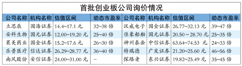 首批10家創業板企業詢價報告出臺,保薦人給出的詢價上限對應2009年動態市盈率無一低于30倍。而神州泰岳(300002)保薦人中信證券給出63.64~74.53元的詢價區間,將成IPO重啟以來發行價最高的新股。