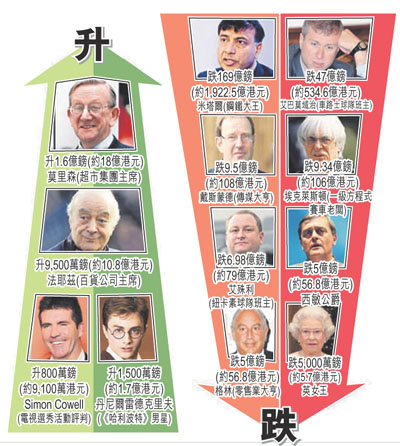 贏家有經(jīng)營超級市場的莫里森,身家上升1.6億英鎊。《哈利波特》電影系列的男主角丹尼爾雷德克里夫的身家暴漲5成至3000萬英鎊。