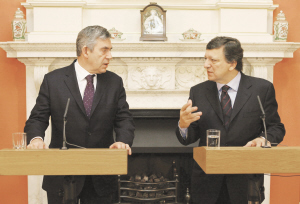 圖為巴羅佐(右)與布朗在記者會(huì)現(xiàn)場(chǎng)。文/本報(bào)記者 陳曉剛 圖/IC