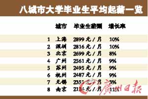 在廣州就業的大學畢業生,今年的薪酬起薪平均為2561元/月,在全國位居第四,相比去年增長了9%。