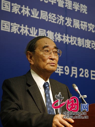 中新網(wǎng)9月28日電 全國(guó)政協(xié)常委、北京大學(xué)光華管理學(xué)院名譽(yù)院長(zhǎng)厲以寧教授在作“關(guān)于集體林權(quán)制度改革思考”的報(bào)告時(shí)表示,林權(quán)制度改革不能單純地仿照農(nóng)業(yè)承包制,必須走超越農(nóng)業(yè)承包制之路。
