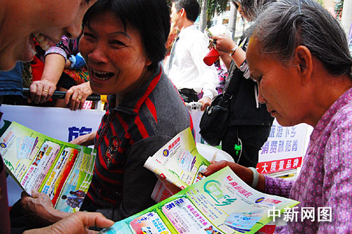 而肇慶市七星巖牌坊廣場也好不熱鬧,擠滿了特意前來選購“旅游下鄉(xiāng)”線路的肇慶各鄉(xiāng)鎮(zhèn)農(nóng)民,看到那么多質(zhì)優(yōu)價(jià)廉的旅游線路,他們臉上都綻放出燦爛的笑容。