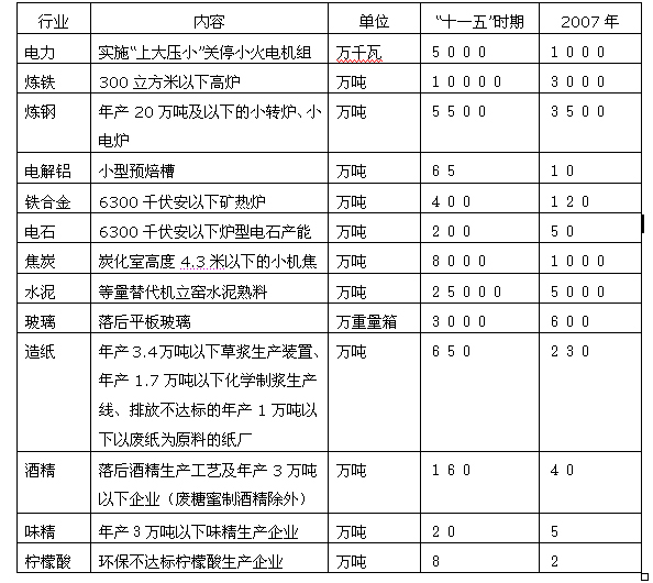附:“十一五”時(shí)期淘汰落后生產(chǎn)能力一覽表