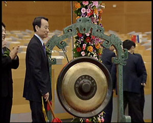 中石油董事長蔣潔敏:“我感覺到我拿的這個鑼槌非常重,這個鑼槌的分量就是公司的責任。我感覺到任務重、責任大。”