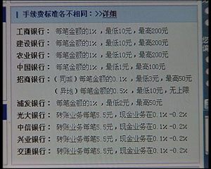 跨行通存通兌業(yè)務(wù)開通前四天,出現(xiàn)了叫好不叫座的情形,很多客戶其實(shí)也希望能享受這種便利,但是一看到銀行的收費(fèi)標(biāo)準(zhǔn),就打退堂鼓了。而記者也注意到,在各家銀行各自拿出的收費(fèi)單上,門檻高的都是國(guó)有商業(yè)銀行,而那些股份制商業(yè)銀行收費(fèi)卻普遍較低,中間相差最大的甚至達(dá)到了十倍,為什么同一個(gè)業(yè)務(wù),不同銀行之間的收費(fèi)差距會(huì)這么大?