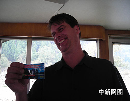 圖為杰夫得知自己是第五百萬名來陽朔的旅游者時,興奮之情溢于言表。 作 者:張文娟