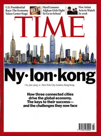中新網1月20日電 著名雜志《時代》周刊在最新一期選了紐約、倫敦和香港三城作為全球化的模范,敘述這個以共同經濟文化為特征的“三城故事”,文章并創造了一個新詞“紐倫港”(即紐約,倫敦,香港),指出認識了這3個國際性大都會,即等同認識了這個全球化時代。
