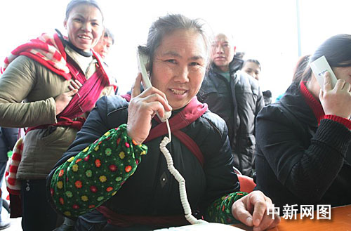 中新網(wǎng)杭州1月30日電(記者童靜宜 通訊員葉周 劉寰平) “杭州這里下雪,車子開不了。過兩天就回來了,別擔(dān)心!”在城站火車站的中國電信服務(wù)點上,一位湖北武昌的民工正在通過免費公話向千里之外的親人報著平安。
