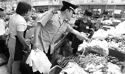 昨天(1日)是全國實行“限塑令”的第一天。當天,北京各大超市都遵守禁令,對塑料袋進行了明碼標價。不過,記者發現肯德基仍然提供免費塑料袋,而自由市場中的攤販則說“沒聽說過禁令”。