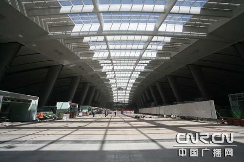 自2005年12月25日開工至今,歷時2年多,北京南站這一設計使用年限100年、總建筑面積42萬平方米的大型綜合交通樞紐,日前進入工程收尾階段,預計于6月30日竣工,7月中旬完成系統調試,8月1日正式開通運營。