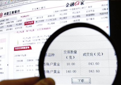 投資者以843.6元每克賣出工行紙 黃金。本報記者周民攝
