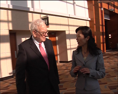 記者:“我現在是在美國內布拉斯加州的小鎮奧馬哈,每年母親節的前一個星期六,都會有來自世界各地的人來到這個小鎮,他們懷著一種朝圣的心理來到這里,是為了一個人:沃倫•巴菲特,今天是伯克希爾哈撒韋公司2008年的年會,呆會有3.5萬人將要進入我身后的這個中心廣場。”