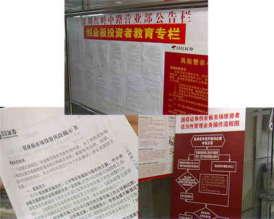 在招商證券公司的這家營業(yè)部,記者注意到公司大門外的墻面上,張貼著不少關(guān)于創(chuàng)業(yè)板的知識介紹、開戶流程等信息,而開戶大廳里人頭攢動。