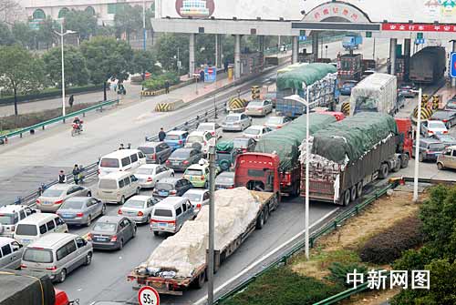 中新網(wǎng)九江2月7日電 (胡國(guó)林)連日來(lái),九江長(zhǎng)江大橋車輛驟增,自2月6日8時(shí)至7日8時(shí),九江長(zhǎng)江大橋車輛日通行量達(dá)到3.1萬(wàn)輛以上,已超過(guò)大橋的承載飽和數(shù)近60%,堵車嚴(yán)重,排隊(duì)車流自大橋收費(fèi)處蔓延數(shù)公里。