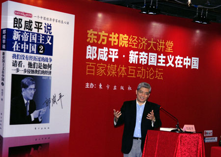 郎咸平警示,華爾街貪婪給中國及歐洲造成危機,他們為追逐利益是不會顧及道德責任的,中國不應該忽略或是低估“新帝國主義”操縱經濟所帶來的負面影響。“危機本身不可怕,只要把危機說透了,就不會再有危機。”郎咸平說。