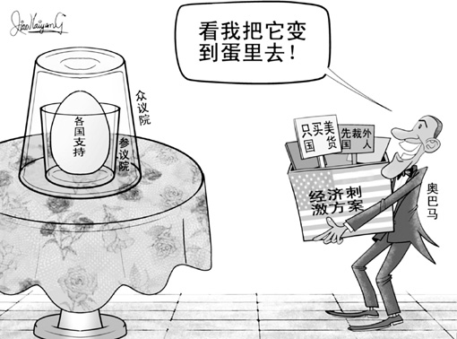 按照相關程序,該經濟方案還需經參眾兩院表決通過后,經奧巴馬簽字后才會最終成為法律。如果美國具有明顯貿易保護色彩的巨額經濟刺激方案最終得以通過,此舉是否會就此開啟了摧毀自由貿易體制的潘多拉之盒?