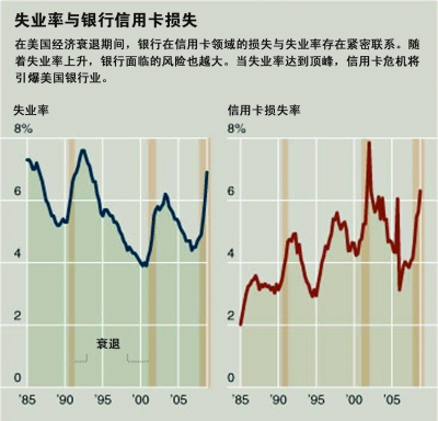 隨著美國失業(yè)率飆升至8.9%達53.9萬人時,許多信用卡持卡人陷入財政困境,無力償還欠款。更多的失業(yè)意味著更多的銀行損失。專家預(yù)測,很快會有上百萬美國人無力償還信用卡債務(wù),對發(fā)卡銀行來說,這是持卡人給他們挖的一個“新坑”,信用卡損失正成為美國銀行業(yè)面臨的新挑戰(zhàn)。
