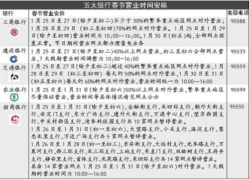 記者20日上午從工行、建行、招行等銀行獲悉,春節期間的網點營業安排已出爐。