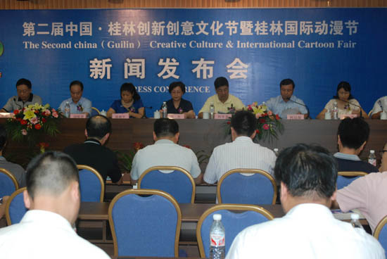 中新網桂林8月9日電 (周利朔 何斌)廣西桂林市政府9日召開新聞發布會宣布,第二屆中國桂林創新創意文化節暨國際動漫節將于10月16號至18號在桂林舉行,屆時大陸及港臺知名藝人梁靜茹、張信哲、齊秦、王杰、范曉萱等將聯袂到場演出助興。
