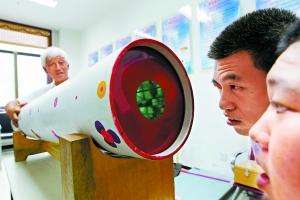 ▲ 老李參加了殘聯(lián)的幫扶活動,義務(wù)輔導(dǎo)智障人士制作簡單的萬花筒,進(jìn)行康復(fù)訓(xùn)練。為了讓學(xué)員們產(chǎn)生興趣,他特意搬來自己制作的目前國內(nèi)最大的萬花筒,長達(dá)1.4米。