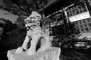 初秋的下午,陽(yáng)光懶散地灑落在北大西門(mén)辦公樓前。兩只石麒麟靜靜蹲坐著,仿佛在曬太陽(yáng),又像在冥想著遙遠(yuǎn)的故事。“看樣子是文物吧!币幻猩T著車(chē),一條腿撐在石麒麟身上。