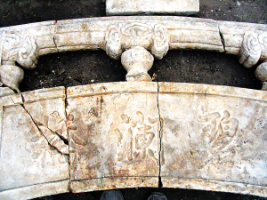 據(jù)他介紹,在圓明園中目前已經(jīng)使用的修復(fù)方式還體現(xiàn)在對含經(jīng)堂的保護上。這也是一種傳統(tǒng)的有效方法。就是用一些整理出的殘余構(gòu)件,把遺址的“臺子”等基礎(chǔ)搭建出來。不再做任何破壞人為景觀的復(fù)建。