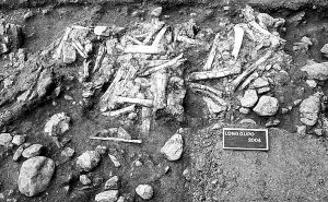 2003年到2006年,黃萬波與法國科考隊在龍骨坡發現了一個3平方米左右的化石層。重疊堆積著大量的動物前后腿化石,有明顯的石器砸削痕跡,就此判斷有人類活動。