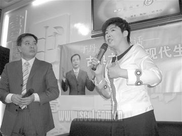 昨日上午,中華書(shū)局在圖書(shū)訂貨會(huì)上邀請(qǐng)著名學(xué)者于丹前來(lái)捧場(chǎng),于丹又拉上自己的校友、同為著名學(xué)者的康震,兩人一起進(jìn)行了一場(chǎng)名為“古典之美與現(xiàn)代生活”的學(xué)術(shù)對(duì)話。話題所限,他們的對(duì)話內(nèi)容比較專(zhuān)業(yè)和枯燥,現(xiàn)場(chǎng)反應(yīng)比較極端,有些聽(tīng)眾昏昏欲睡,另一些卻拿起筆記本記下“名人語(yǔ)錄”。還有不少聽(tīng)眾開(kāi)始在臺(tái)下議論起這個(gè)“學(xué)術(shù)超女”的衣著打扮,“她穿的衣服好像餐館的制服哦”,“于丹皮膚不怎么好,她應(yīng)該買(mǎi)好點(diǎn)兒的化妝品。”