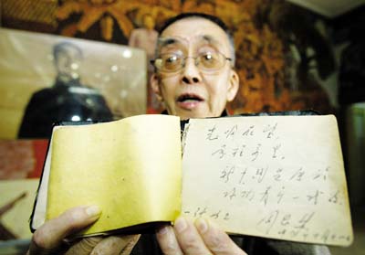 昨日,張治中將軍之子、全國港澳臺(tái)僑聯(lián)誼會(huì)會(huì)長、79歲的張一純老人專程從北京趕來,從衣兜里小心地掏出了一本黑色硬面抄,里面有周總理為他的題詞,這是老人最珍貴的物品。