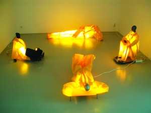 參展“融超經驗2008”的23位藝術家中,既有像庫奈利斯這樣享譽國際的名藝術家,也有初出茅廬的青年人。在開幕式上,記者看到了如今旅居羅馬的庫奈利斯的三個“無題”裝置藝術,還有喬治·拉帕斯的“發光雕塑”與盧卡斯·薩馬拉斯的《鏡中的房間》。喬治·拉帕斯介紹,他的靈感來自街上的燈箱:“當光源的光向四處彌漫,四周的氛圍都發生了變化。”