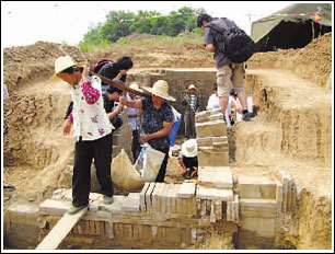 南朝古墓挖掘現(xiàn)場(chǎng)。