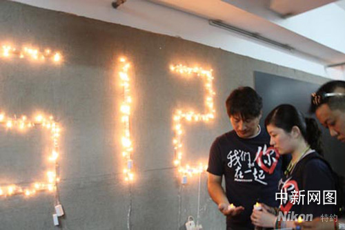 中新網(wǎng)南京六月十三日電 (牛莉) 六月十二日下午兩點(diǎn)二十八分,一群南京市民在南京先鋒書店,自發(fā)站成一排,手里拿著蠟燭,表情嚴(yán)肅,低頭默哀,他們的前方赫然醒目的亮著5.12這個(gè)銘記在人們心中的數(shù)字。