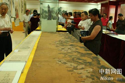 中新網常州八月二十八日電(唐娟)“長四點六八米,寬零點八八米,南宋畫派的代表人物李安忠如此巨幅畫作今世可謂獨此一件”。北京奧運圓滿落幕,已是古稀之年的常州藝術家王之羲按奈不住心中激動,今天在神州第一高佛塔常州天寧寶塔內展示自己多年收藏“祈褔世界和平”。